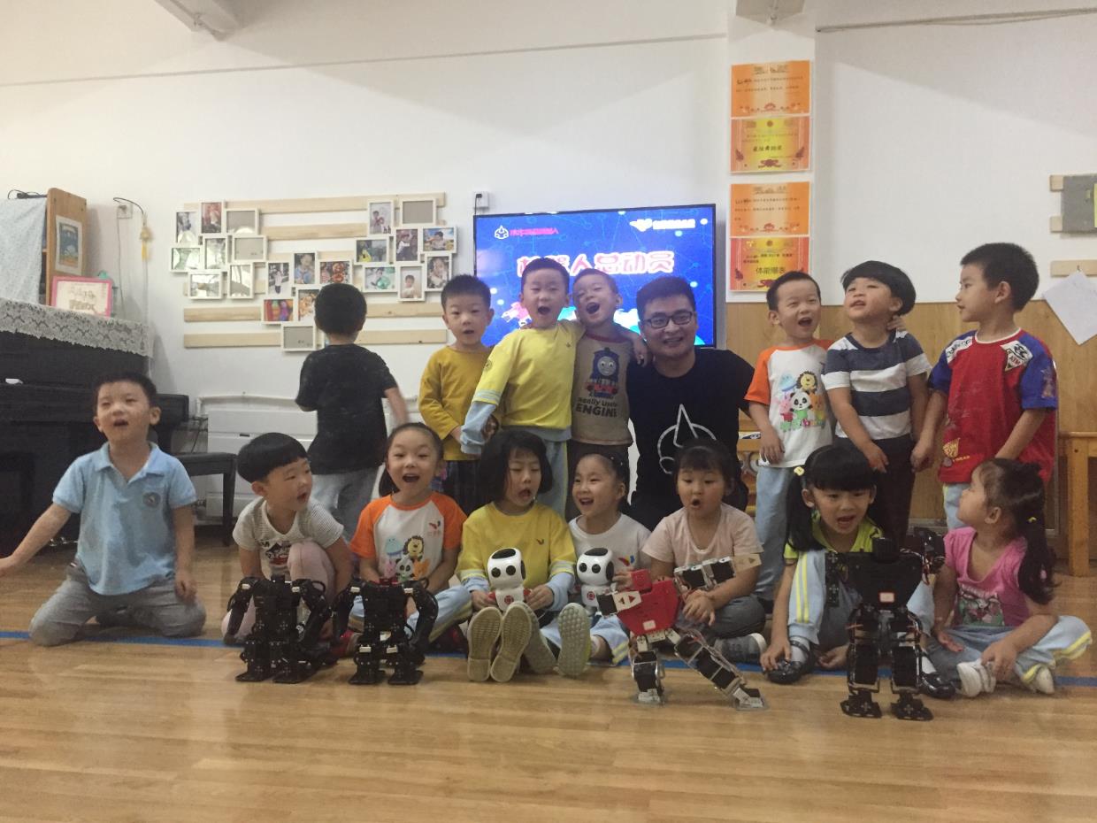 小朋友們珍惜地抱著彭彭樂樂不肯放開。最后木牛流馬機(jī)器人科技公司的CEO張寧與小朋友們一起合了影。