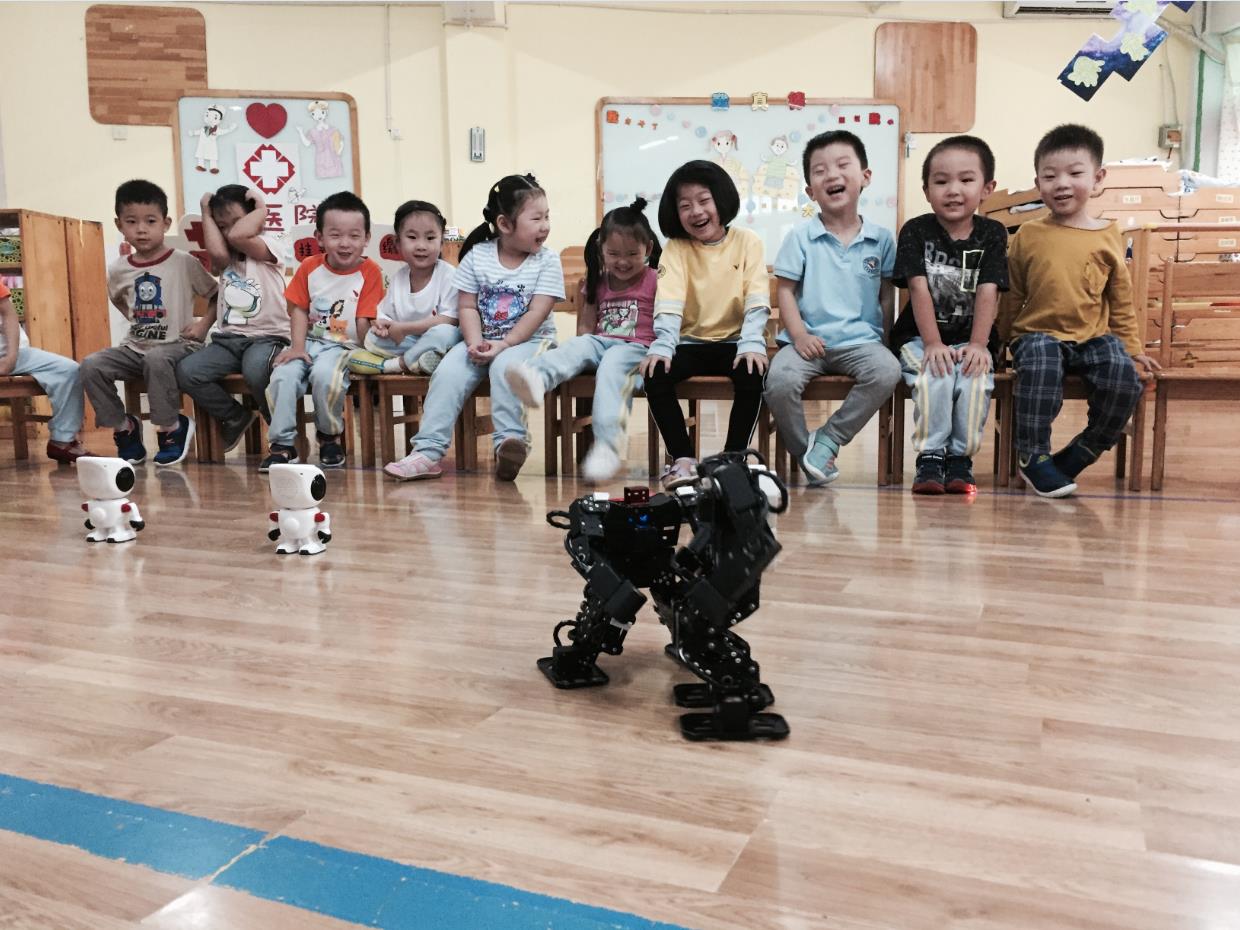 Albert機(jī)器人給小朋友們帶去歡樂,每個(gè)小朋友臉上閃耀著純真的笑容